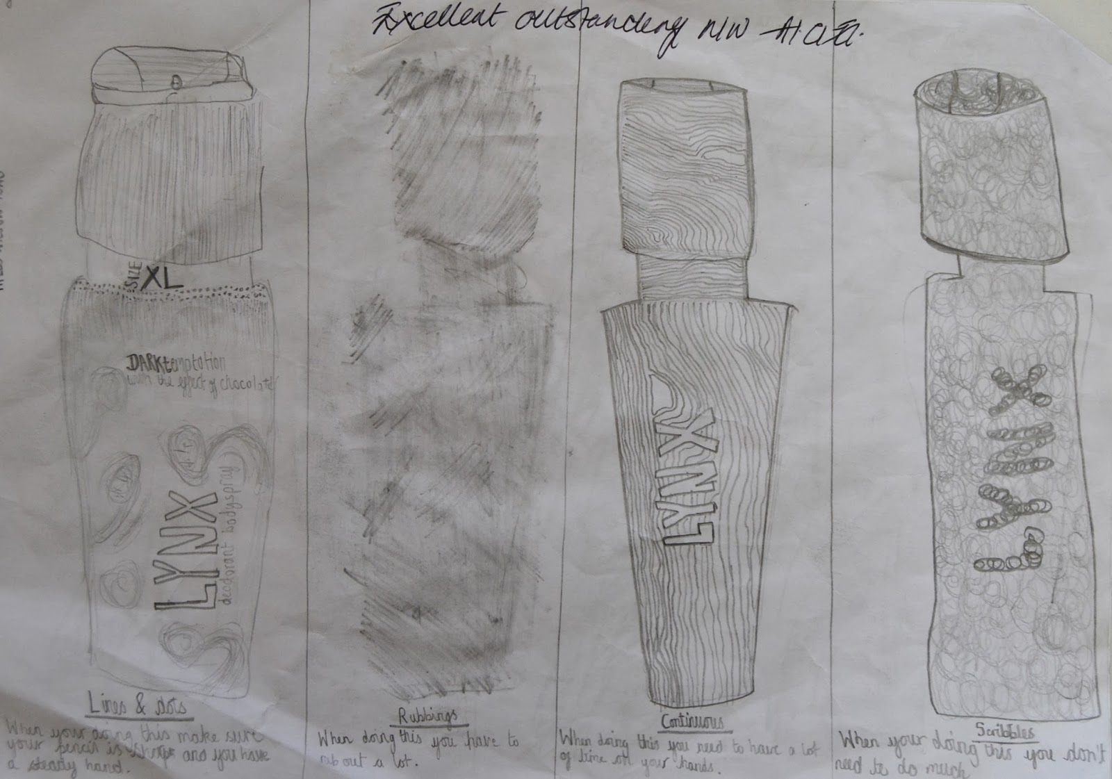 Below are some exemplary examples of a mark making homework from one of Miss Gomm's classes